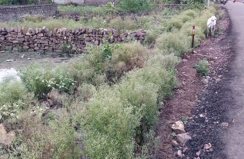 सांगोद में जलदाय विभाग कार्यालय के पीछे बस्ती में खाली भूखंडों पर उगी गाजर घास