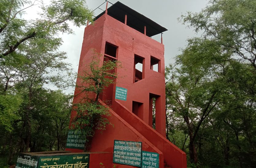 भैंसरोडगढ़ अभयारण्य स्थित रिलोकेशन सेटर पर वाच टावर।