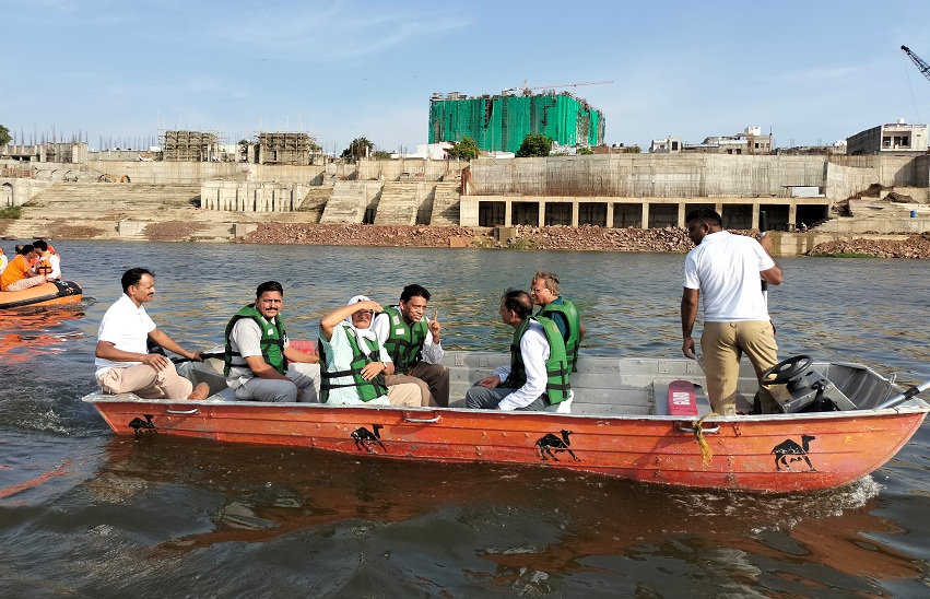 स्वायत्त शासन मंत्री ने नाव में बैठकर रिवरफ्रंट के प्रवेश द्वार, मन्दिर घाट, जवाहर घाट, सिंह घाट, संस्कृति घाट सहित सभी घाटों के निर्माण कार्य के लिए बनाए गए स्ट्रक्चर का निरीक्षण कर फसाड़ कार्य निर्धारित समय में पूरा कराने पर जोर दिया।