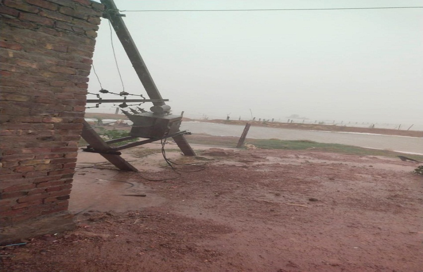 तूफान से गिरा ट्रांसफार्मर
