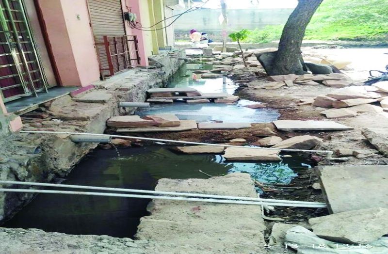 बारां रोड स्थित जयहिंद नगर में यूआईटी नाली और सड़क का निर्माण करा रही है। पहले ब्लॉक के करीब 16 मकानों के सामने से गुजर रही नालियों का निर्माण उनके बहाव की दिशा में करके पास से गुजर रहे नाले में छोडऩा था, लेकिन ऐसा करने के बजाय ठेकेदार ने नालियों का बहाव उल्टा कर उसे मुख्य मार्ग से गुजर रही ड्रेनेज पाइप से जोड़ दिया।