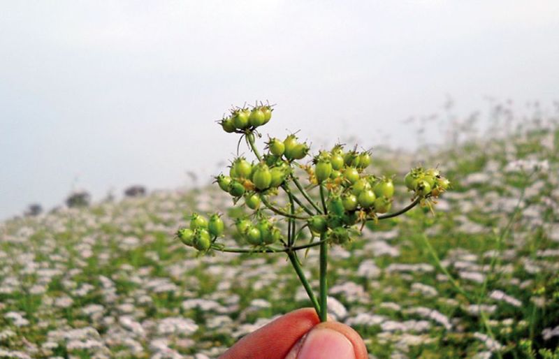 धनिया की बुवाई इस बार देरी से होने के कारण धनिए की फसल का रकबा प्रभावित है। धनिए में फूल बनने की अभी शुरूआत नहीं हुई तो कई जगह धनिया की पौध पल्लवित नही हुई है।