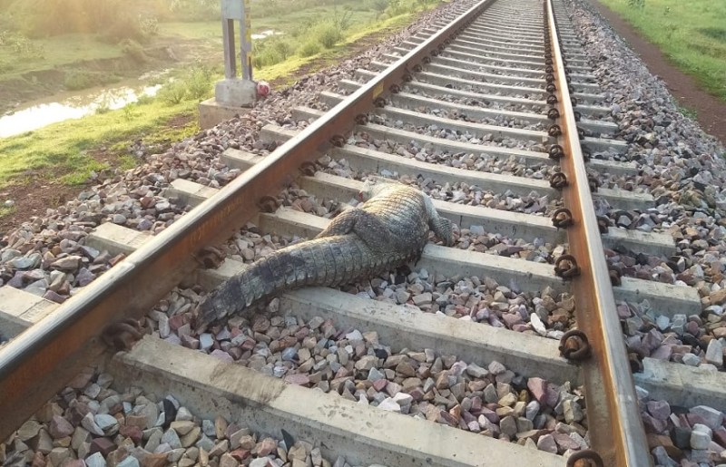 ट्रेन की टक्कर से मगरमच्छ की मौत
