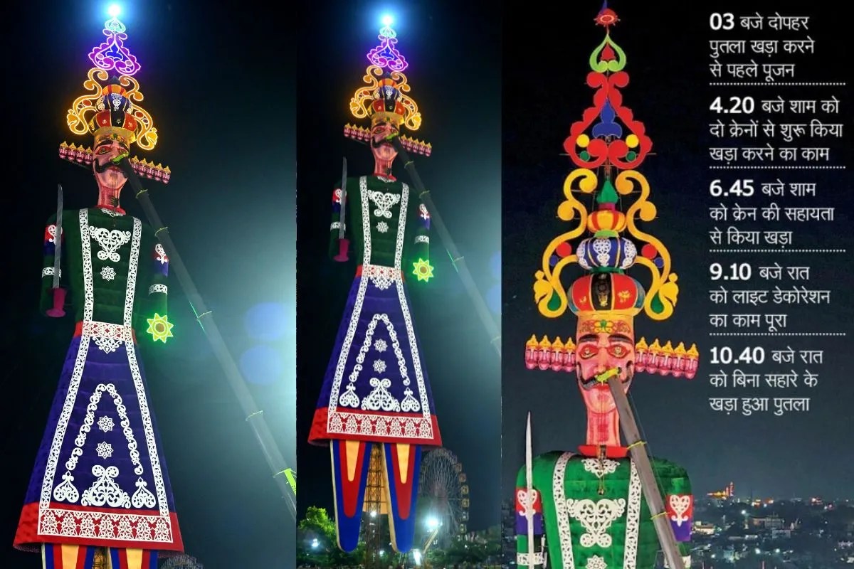 यहां दहन स्थल पर 26 गुणा 24 का आरसीसी का सॉलिड फाउंडेशन तैयार किया गया था। इसमें आठ स्टील की जैक वाली रोड लगाई गई थी। साथ ही, आठ लोहे के रस्से से रावण को सपोर्ट दिया गया। पेडस्टल पर फिश प्लेट को जॉइंट किया गया। इन पर 8 नट की चूड़ियों से रावण का पुतला खड़ा किया गया। पुतले को खड़ा करने में 220 टन एवं 100 टन की हाइड्रोलिक क्रेन काम में ली गई।