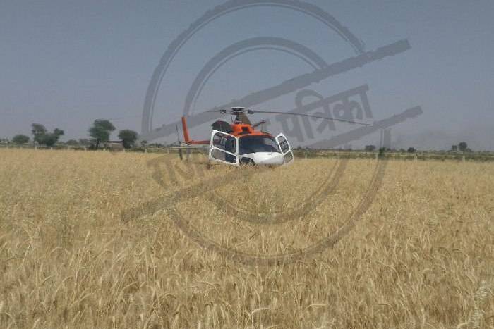 कोटा में मंगलवार को एक हेलीकॉप्टर की इमरजेंसी लेंडिंग करानी पड़ी। हेलीकॉप्टर में अचानक ऐसी तकनीकी खराबी आई कि उसे एयर पोर्ट तक लाना मुश्किल हो गया। इसलिए पायलट ने गेहूं के खेतों में ही हेलीकॉप्टर उतार दिया।