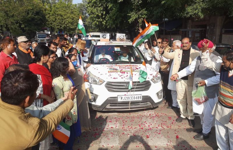 कोटा. अखिल भारतीय किसान संघर्ष समन्वय समिति की ओर से कोटा कलक्ट्रेट से शनिवार दोपहर किसानों का जत्था कारों से दिल्ली के लिए रवाना हुआ। जत्था दिल्ली में 26 जनवरी को आयोजित ट्रैक्टर रैली में शामिल होगा। वहीं समिति की ओर से कलक्ट्रेट पर धरना 42वें दिन भी जारी रहा।