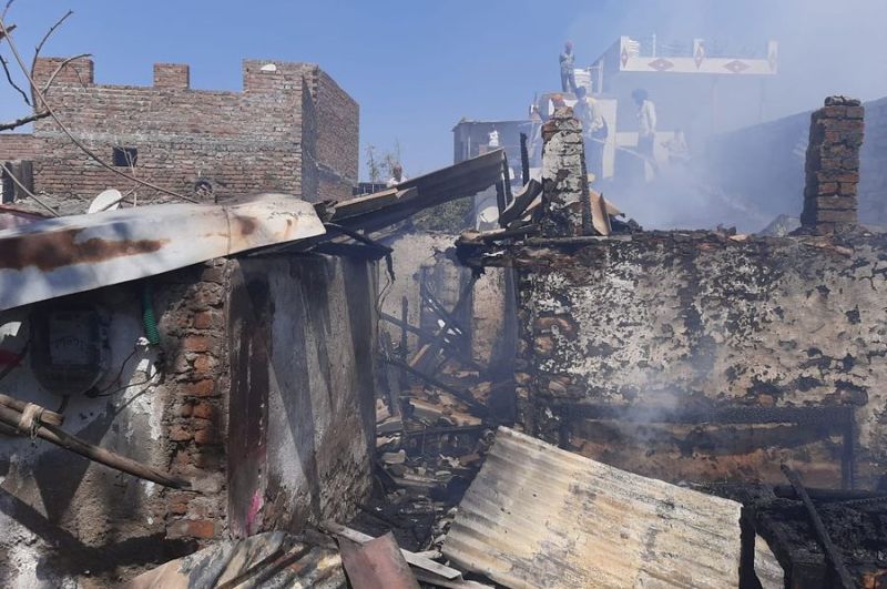 सहायक अग्निशमन अधिकारी देवेन्द्र गौतम ने बताया कि बस्ती में विमल घरानी का कच्चा मकान है। विमल कैटरिंग का काम करता है। बुधवार को घर पर खाना बनाते समय गैस लीक होने से सिलेंडर में आग लग गई। आग ने पास के विमल के बेटे श्याम के कच्चे घर को भी चपेट में ले लिया। आग तेजी से फैली और सारा सामान जलकर खाक हो गया।