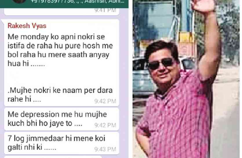 व्यास ने 'राकेश व्यास आग वाट्सअप ग्रुप पर मंगलवार रात 9.42 बजे नौकरी से इस्तीफा देने की पोस्ट डाल दी थी। इसके बाद इस ग्रुप के अन्य सदस्यों ने अलग-अलग प्रतिक्रिया दी। इस पोस्ट अग्निशमन एवं आपदा प्रबंधन समिति ने इस्तीफा दे चुके अतुल कौशल ने भी कमेंट किया हैं। याद रहे कि पिछले दिनों अतिक्रमण निरोधक दस्ते के प्रभारी राकेश व्यास की अगुवाई में आयुक्त के निर्देश पर राज्य सरकार के स्टे के बावजूद एक बिल्डर की मल्टीस्टोरी का गेट तोड़ दिया गया था। सरकार ने इसे गंभीर माना था और राकेश व्यास तथा एक्सईएन ए.क्यू. कुरैशी को एपीओ किया गया था। कुरैशी को अभी तक रिलीव नहीं किया गया है। जबकि व्यास को कार्यमुक्त किया जा चुका है।
