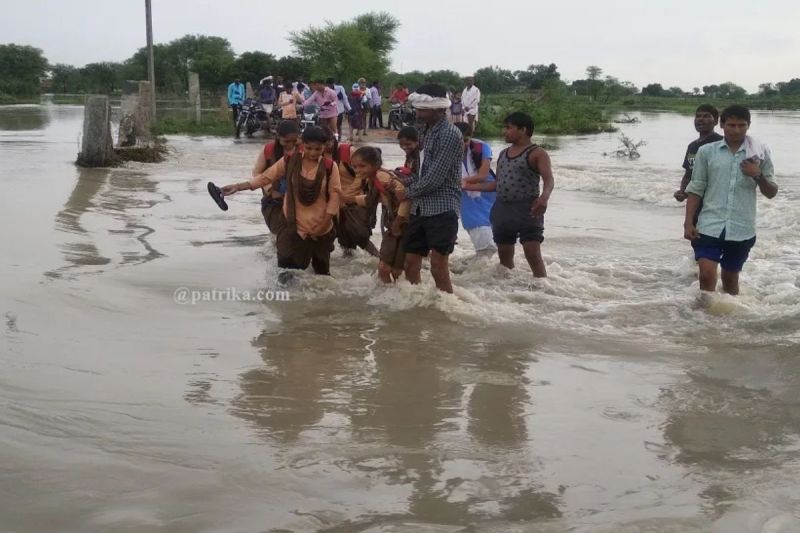 IMD Prediction: सवाईमाधोपुर जिले में बीते 24 घंटे में बारिश ने तबाही मचाई है। कई जगहों पर बाढ़ जैसे हालात हो गए। भारी बारिश से आम जनजीवन पूरी तरह से अस्त-व्यस्त रहा। इसके चलते जिला कलक्टर ने स्कूलों का अवकाश घोषित कर दिया। तेज बारिश का दौर देर रात करीब एक बजे बाद से शुरू हो गया था। लेकिन सुबह होते-होते बारिश का दौर तेज हो गया। सुबह करीब पांच बजे बाद तो बरसात ने विकराल रूप ले लिया। शहर में लटिया नाले में उफान से आसपास की आबादी में पानी-पानी हो गया। वहां बाढ़ जैसे हालात बन गए। शहर बड़ा राजबाग पुलिया टूटने से दूसरी ओर फंसेे लोगों को शहर पुलिस चौकी व सिविल डिफेंस की टीम ने रेस्क्यू कर घरों तक पहुंचाया।