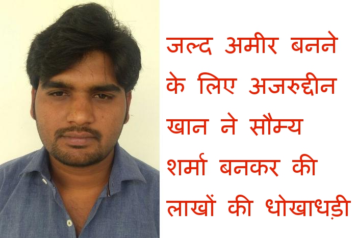नाम बदल कर लोगों से धोखाधड़ी करने वाला आरोपित आखिरकार पुलिस के हत्थे चढ़ ही गया। पुलिस अधीक्षक अंशुमान भौमिया ने बताया कि मुखबिर की सूचना पर पुलिस टीम ने सुभाष विहार के एक मकान में दबिश दी। जहां से अजरुद्दीन खान को गिरफ्तार किया। अजरुद्दीन के पास से सौम्य शर्मा के नाम के फर्जी दस्तावेज मिले हैं। जोशी ने बताया कि अजरुद्दीन के खिलाफ अनंतपुरा थाने में मामला दर्ज है।