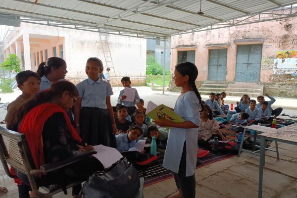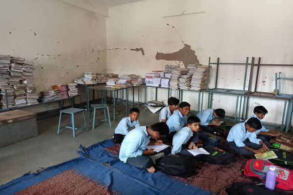 पर्याप्त भवन के अभाव में टीन शैड की नीचे अध्ययन।