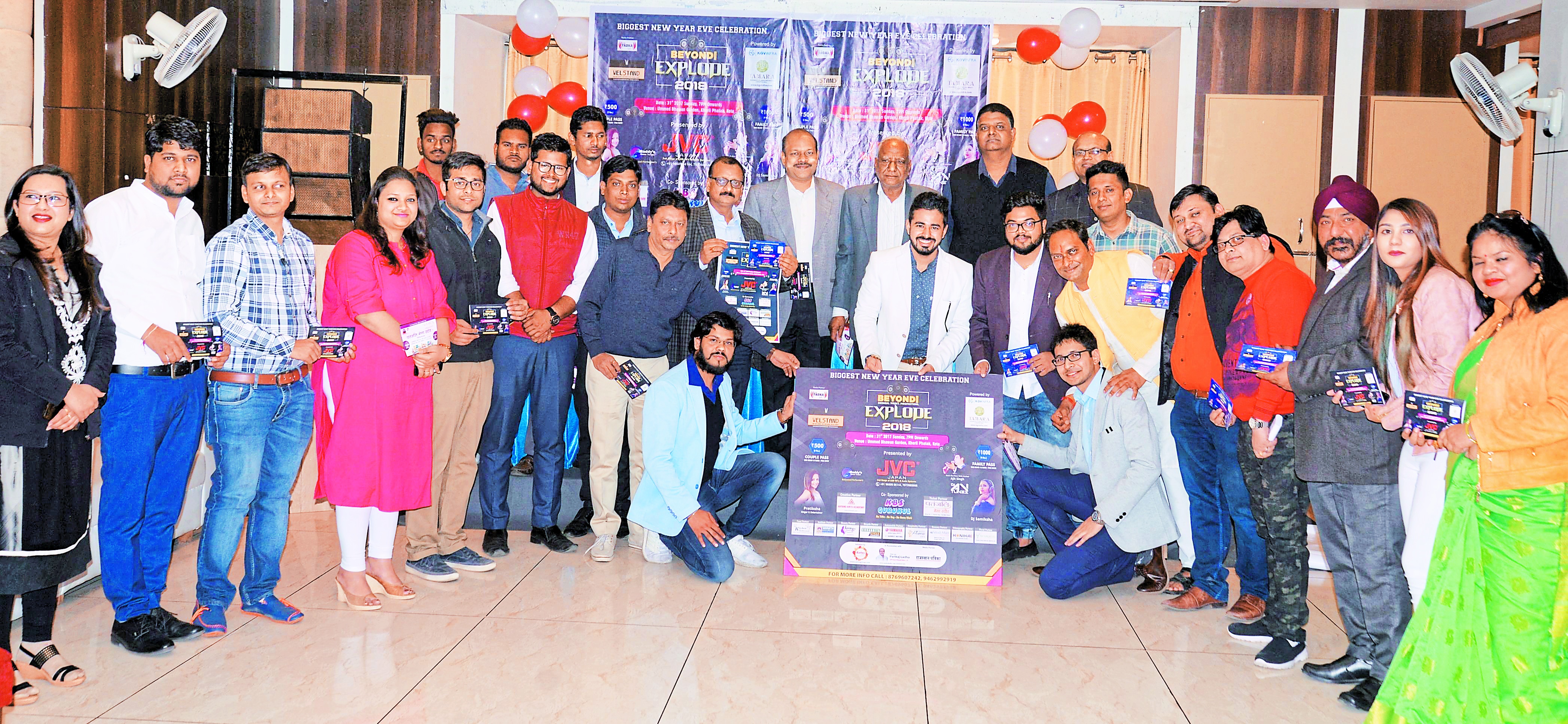 कोटा . डीजे, डांस, फन, फूड व सिंगिग धमाल के साथ होगा कोटा का सबसे भव्य न्यू इयर सेलिब्रेशन। इटोस इंवेट की ओर से नए साल का जश्न 'बियोंड एक्सप्लोड 2018Ó के रूप में 31 दिसम्बर को खेड़ली फाटक स्थित उम्मेद गार्डन में मनाया जाएगा। आयोजन से पहले सोमवार को इसके पोस्टर व प्रवेश पास का विमोचन किया गया।