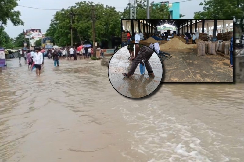भारी बारिश के कारण मंडी में बह गया धनिया (फोटो: पत्रिका)