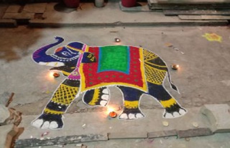 नॉर्थ एक्स टाउनशिप में रंगोली और चित्र बनाकर घर सजाए गए हैं।
