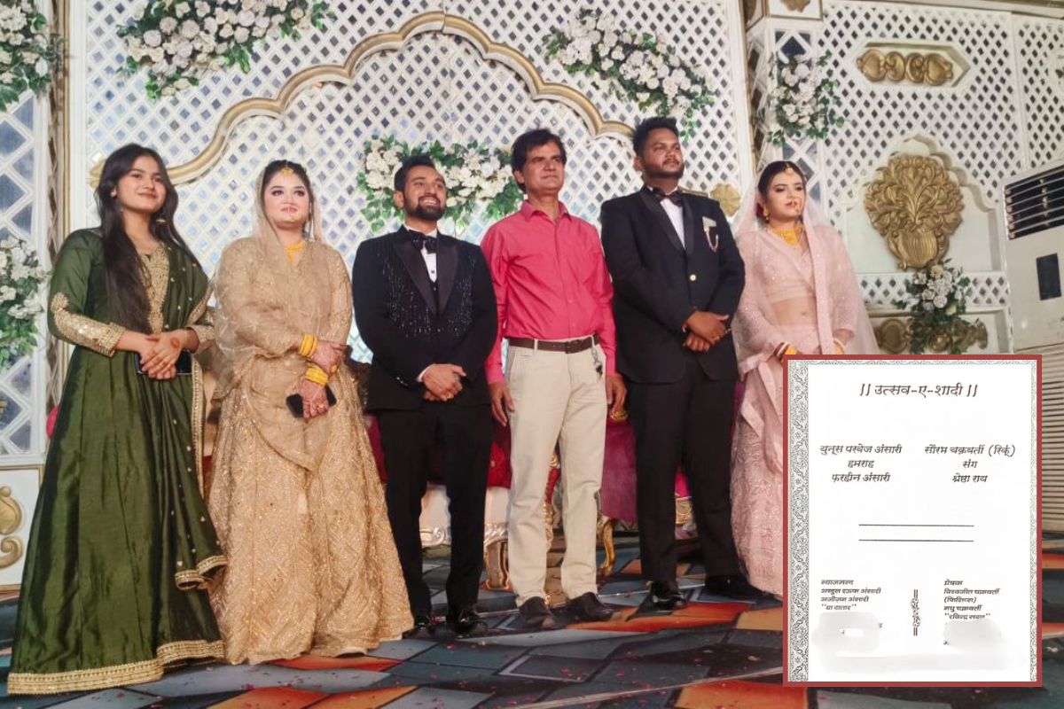 इतने लंबे समय से साथ में रहने के कारण दोनों के लगभग सभी रिश्तेदार एक-दूसरे को अच्छे से जानने लग गए। ऐसे में दोनों ने कार्ड भी एक ही छपवाने का फैसला किया और जैसे ही ये कार्ड लोगों ने देखा तो चकित रह गए। क्योंकि एक ही कार्ड में दोनों के न्योते हिंदी और उर्दू में थे। वहीं दोनों ने दर्शनाभिलाषी में एक-दूसरे के परिवार वालों के नाम छपवाए थे। जब एक दूल्हे की बारात निकली तो दूसरे के परिवार वाले जमकर नाचे। वहीं दूसरे दूल्हे ने निकाह पढ़ा तो बाकी परिवार वालों ने सारी जिम्मेदारी निभाई।