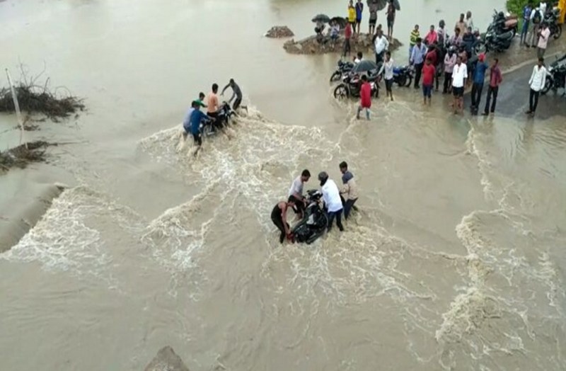 कोटा में मूसलाधार बारिश से चंबल नदी उफनी, सड़क पर तीन फीट पानी, तेज बहाव में फंसे लोग