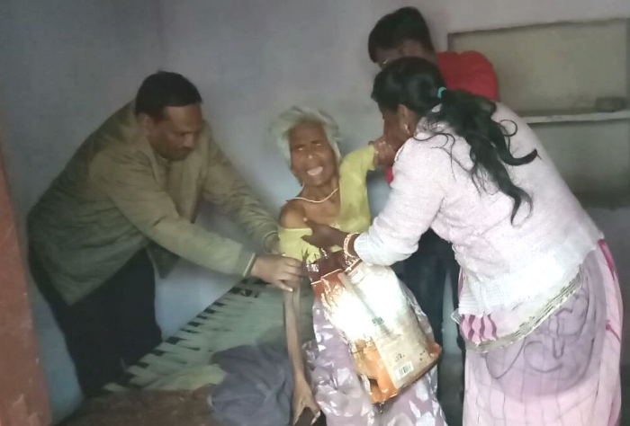 अपना घर सदस्यों ने बताया कि जब टीम पुलिस के साथ खटीक मोहल्ले में पहुंची तो पड़ोसियों में से कोई भी कमरे का ताला खोलने को तैयार नहीं हुआ। आश्रम के सलाहकार मनोज ने ताला खोला तो वृद्धा बेसुध पड़ी थी। 10-12 फीट के कमरे में चहुंओर मल-मूत्र फैला था। ओढऩे-बिछाने को मात्र एक शॉल व फटे-पुराने बिस्तर थे। ये भी मैले कुचेले। महिला का शरीर मल-मूत्र से सना था। शरीर से दुर्गंध आ रही थी।