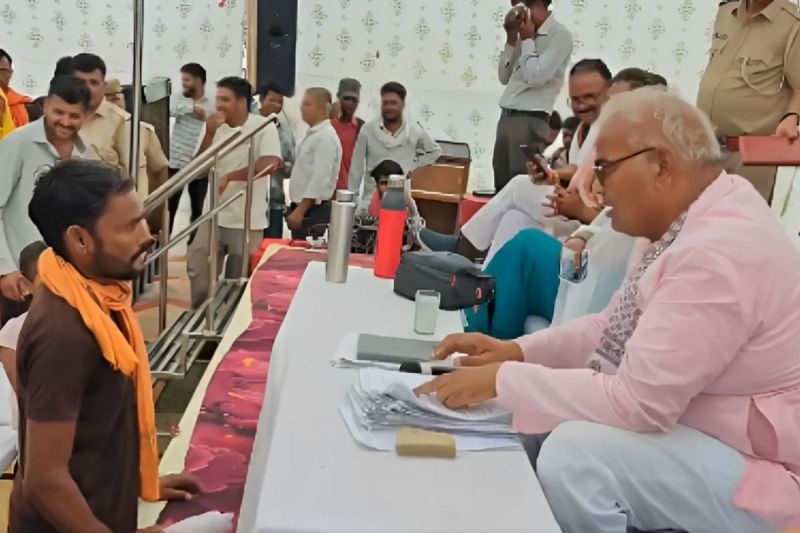 जनसुनवाई के दौरान शिकायत सुनते मंत्री मदन दिलावर (फोटो: पत्रिका न्यूज नेटवर्क)