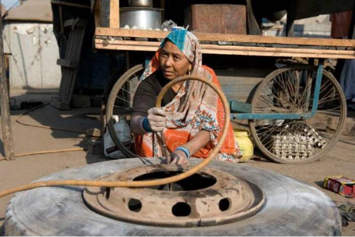 दिल्ली की शांति देवी भारत की एकमात्र ऐसी महिला हैं जो मिनटों में गाड़ियों की टायरे बदलकर पंक्चर बना देती हैं। 55 साल की शांति देवी के लिए वाहनों के बड़े - बड़े टायरों को बदलना बाएं हाथ का खेल है। इन दिनों इनके इस काम की चर्चा सोशल मीडिया पर भी जमकर हो रही है। शांति देवी की मानें तो, वो 50 साल की उम्र में भी रोजाना 12 घंटे काम करती हैं।