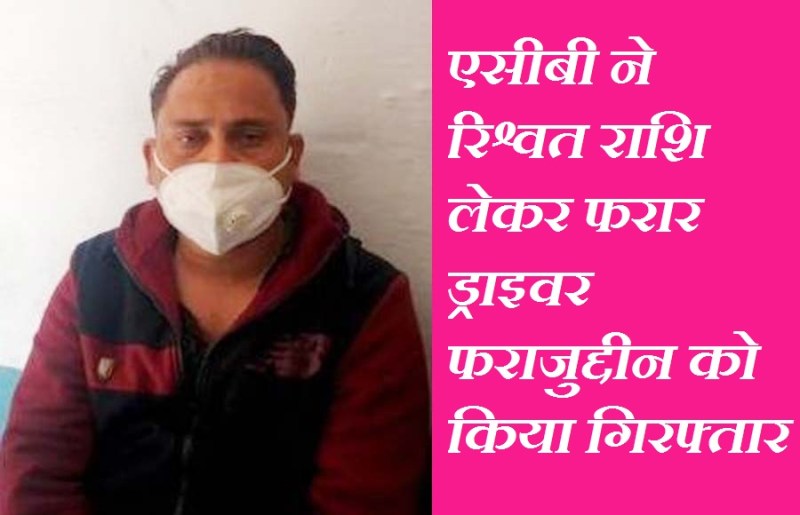 ACB: रिश्वत राशि लेकर फरार हुआ ड्राइवर तीन दिन बाद गिरफ्तार, आबकारी निरीक्षक को भेजा जेल