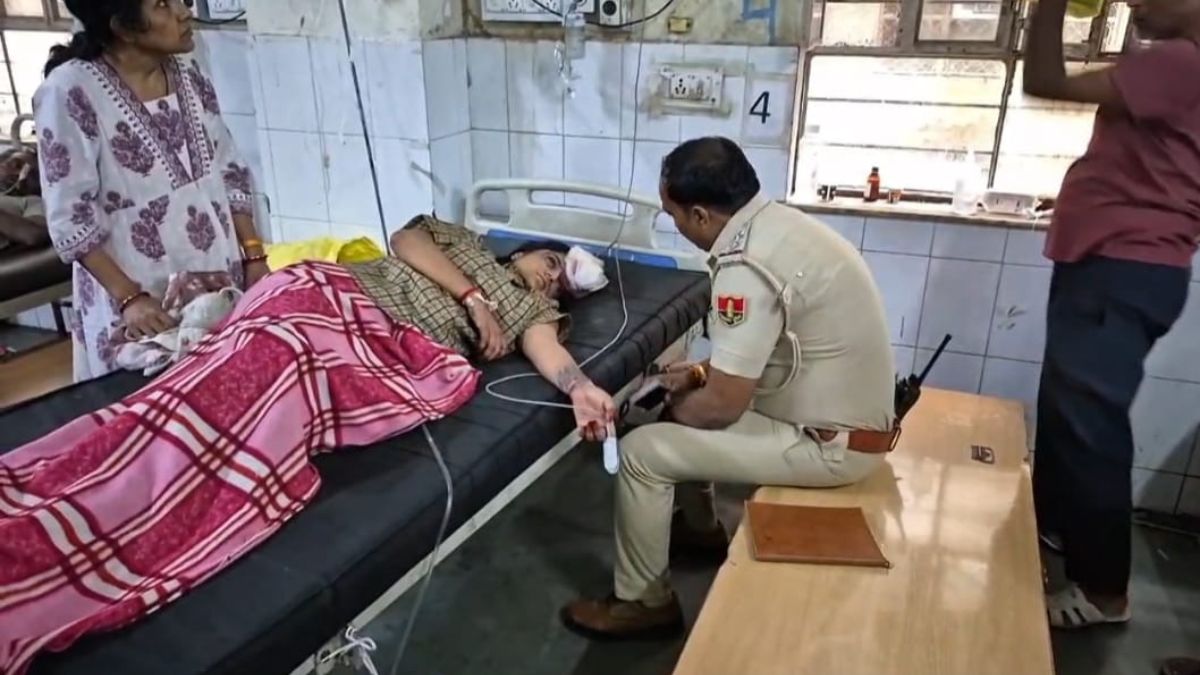 गोली लगने से घायल युवती से पूछताछ करते सीआई। फोटो पत्रिका