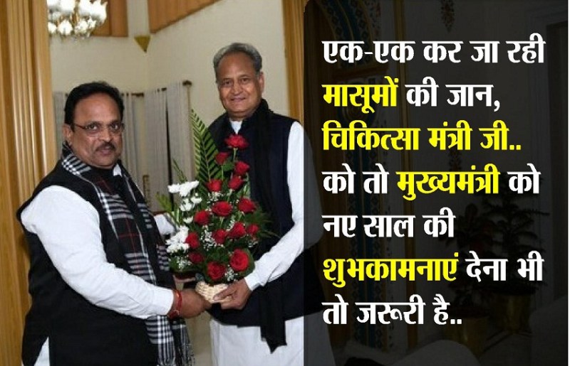 एक ओर जहां सैंकड़ों मांओं की गोद उजड़ गई हो, ऐसे समय में परिवारों को संवेदना देने की जगह चिकित्सा मंत्री ने मुख्यमंत्री अशोक गहलोत को नए साल के मौके पर गुलदस्ता देना ज्यादा जरूरी समझा।