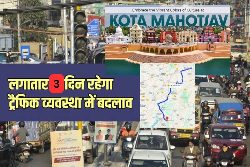 Kota Mahotsav 2024: कोटा महोत्सव आयोजन के दौरान शहर में आने वाले वाहनों के लिए डायवर्जन व यातायात व्यवस्था में बदलाव किया गया है। यातायात डीएसपी अशोक मीणा ने बताया कि सोमवार को गणेश वंदना कार्यक्रम खडे गणेशजी मंदिर में होगा। इस दौरान खड़े गणेश मंदिर की तरफ भारी वाहनों का प्रवेश निषेध रहेगा। कार्यक्रम में उपस्थित समस्त जनों के वाहनों की पार्किंग खड़े गणेशजी मंदिर स्थित पार्किंग में रहेगी।