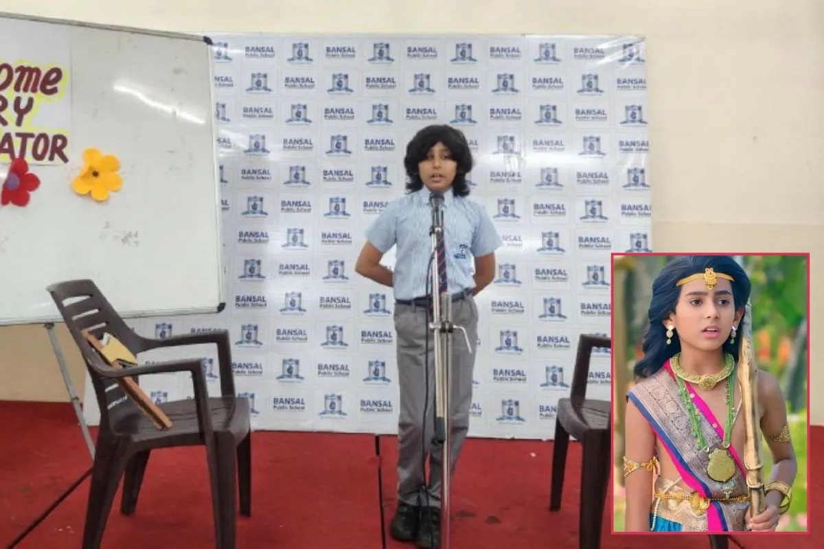 स्कूल में एक कार्यक्रम में छात्र वीर शर्मा अपनी प्रस्तुति देते हुए। फाइल फोटो