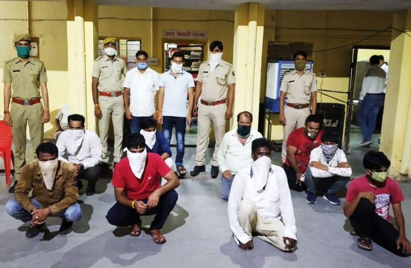 साआई गंगासहाय शर्मा ने बताया कि शाम को गश्त के दौरान मुखबिर से सूचना मिली की सुवालका होटल में लोग जुआ खेल रहे है। सूचना पुख्ता होने पर सर्च वारंट प्राप्त कर होटल की प्रथम मंजिल के चौक में दस लोग जुआ खेलते पकड़े। जिनके कब्जे से जुए की रकम 85 हजार 10 रुपए व ताश के 52 पत्ते जब्त किए। गिरफ्तार मुल्जिमों में रामपुरा कोलीपाड़ा निवासी शाहनवाज (38), घंटाघर चश्मे की बावड़ी निवासी ताहिर हुसैन (52), विज्ञाननगर अमन कालोनी निवासी लियाकत अली (52), नयापुरा सब्जीमंडी निवासी अंकुश जैन (33), नेहरू नगर रेलवे स्टेशन निवासी आसिफ (35), राजीव गांधी कच्ची बस्ती बल्लभबाड़ी निवासी संदीप बाल्मिकी (32), रंगबाड़ी निवासी एश्वर्य सोनी (26), नयापुरा इस्माइल चौक निवासी रसीद मोहम्मद (50), कोतवाली थाना कुम्हारों का मोहल्ला निवासी नफीस (30), श्रीपुरा मछली मार्केट निवासी अकिल (42) को गिरफ्तार किया।
