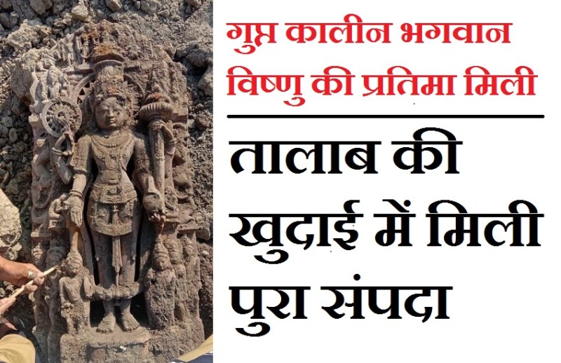 गुप्त कालीन डेढ़ क्विंटल वजनी शंख, चक्र, गदा पद्म धारण की हुई भगवान विष्णु की प्रतिमा मिली