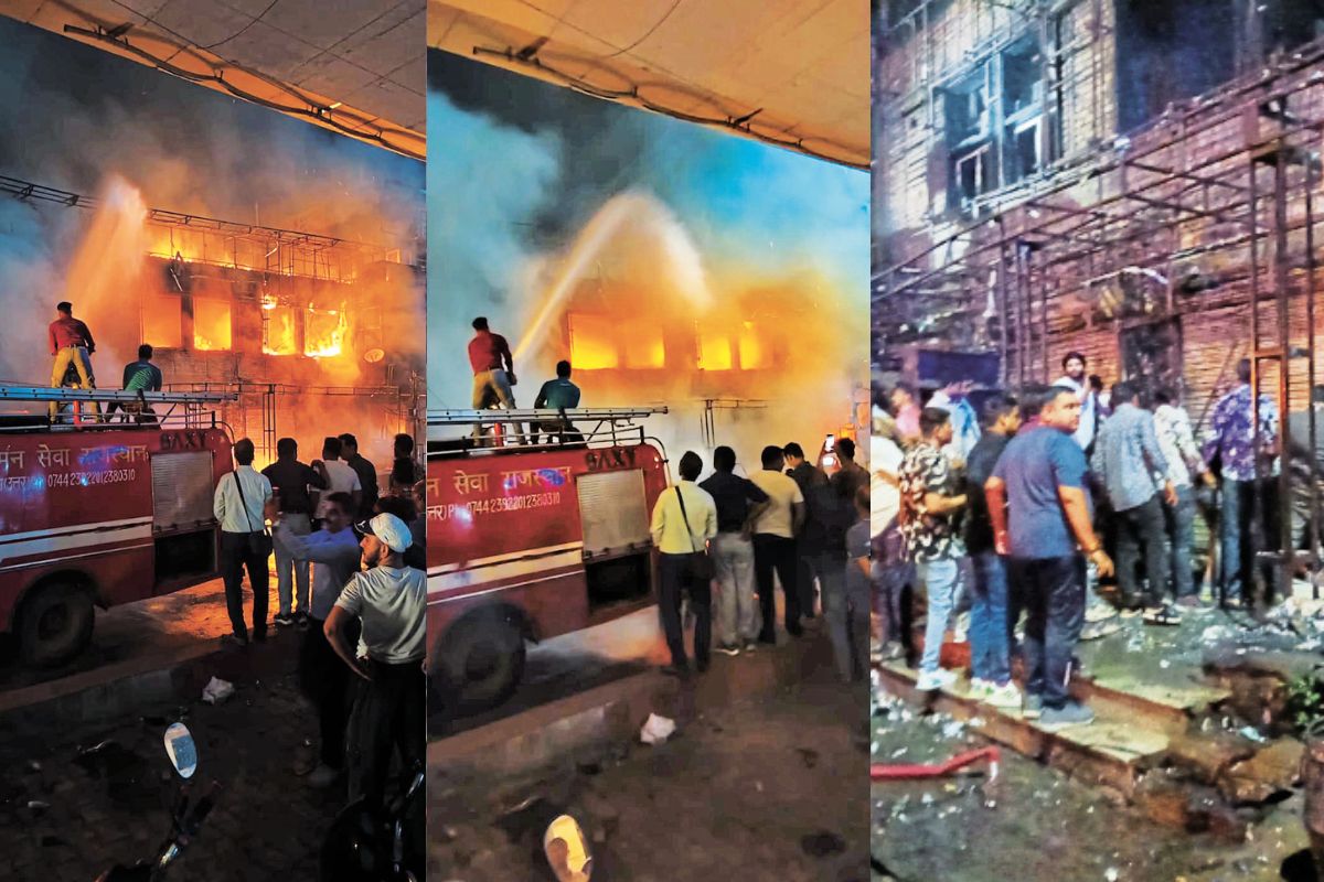 Kota Fire News: महावीर नगर थाना क्षेत्र के केशवपुरा चौराहा स्थित एक कटले में सोमवार देर रात भीषण आग लगने से हड़कंप मच गया। आग इतनी भयावह थी कि इसकी लपटें केशवपुरा फ्लाईओवर के ऊपर तक दिखाई दे रही थीं। आग की चपेट में आकर कटले की लगभग 10 दुकानें पूरी तरह जलकर खाक हो गईं। इनमें एक ढ़ाबा, हार्डवेयर शॉप, मैकेनिक की दुकान, मोबाइल शॉप, बैंड-बाजा की दुकान समेत अन्य व्यापारिक प्रतिष्ठान शामिल हैं।