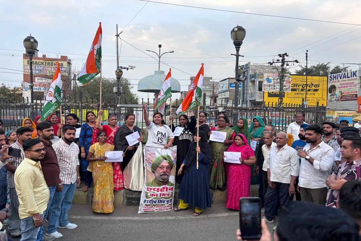 Letest News : कोटा. महिला कांग्रेस कोटा शहर जिलाध्यक्ष के नेतृत्व में महिला कांग्रेस की कार्यकर्ताओं ने संतोषी नगर चौराहे पर केंद्रीय मंत्री हरदीप सिंह पुरी के विरुद्ध विरोध प्रदर्शन किया। प्रदर्शन के दौरान कार्यकर्ताओं ने विरोध नारे लिखी टीशर्ट पहन कर एवं तख्तियां प्रदर्शित करते हुए केंद्र सरकार से स्पष्ट और सार्वजनिक जवाब की मांग की एवं केंद्रीय मंत्री हरदीप सिंह पुरी का विरोध जताया।