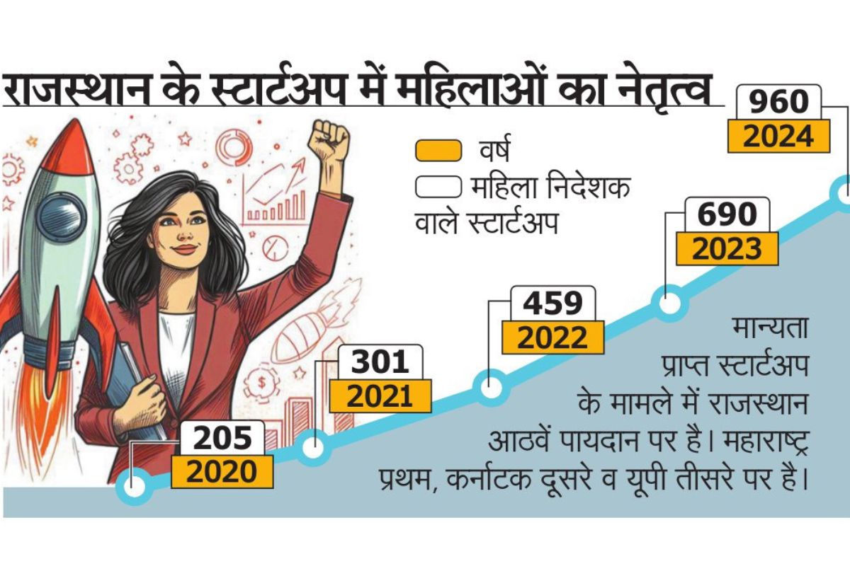 कोटा। स्टार्टअप में महिलाओं की भागीदारी तेजी से बढ़ रही है। राजस्थान में महिला नेतृत्व वाले स्टार्टअप की संख्या पांच साल में करीब पांच गुणा तक बढ़ गई है। राज्य में वर्ष 2020 में जहां महिला निदेशक वाले स्टार्टअप की संख्या महज 205 थी।