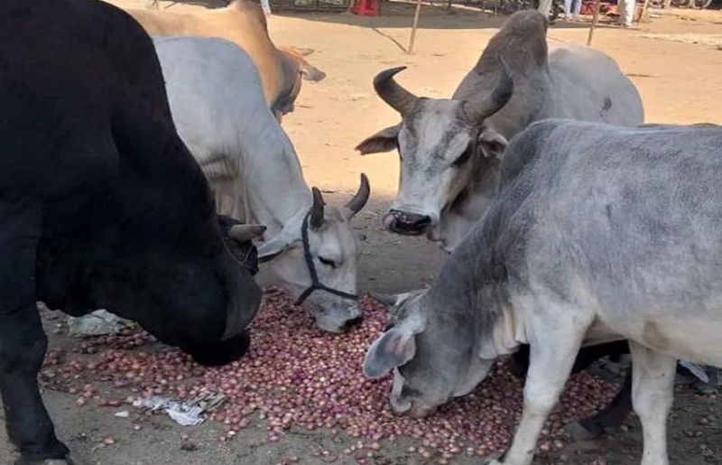 गत वर्ष प्याज के अच्छे दाम मिले थे और सरकारी खरीद भी हुई थी। इसको देखते हुए किसानों ने प्याज काफी मात्रा में बोया। नई फसल अच्छी भी हुई। थोक मंडी में नए प्याज की आवक बढ़ गई, लेकिन मांग काफी कम हो गई। इससे मंडी में शुक्रवार को थोक भाव में प्याज एक रुपए प्रति किलो से बिका। उच्च क्वालिटी के प्याज भी 5 रुपए किलो से अधिक नहीं बिके। लागत भी नहीं निकले से रुआंसा करीब आधा दर्जन से अधिक किसानों ने मंडी में प्याज नहीं बेचा और 6-7 क्विंटल प्याज मवेशियों के हवाले कर चले गए।
