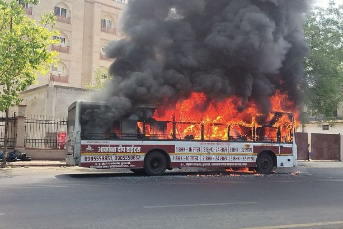 कोटा के नयापुरा थाना इलाके में एमबीएस चिकित्सालय के ठीक सामने शुक्रवार सुबह चलती हुई लो फ्लोर बस (सिटी बस) में आग लग गई। इस पर बस में बैठी सवारियों में अफरा-तफरी मच गया। आग लगने के बाद बस के दोनों गेटों से सवारियों को तेजी से नीचे उतारा गया।