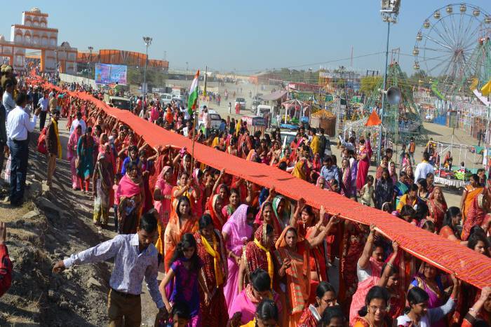 बसंत पंचमी के एक दिन पहले निकाली गई इस शोभायात्रा मे चुनरी को महिलाओं के समूह ने दोनों हिस्सों से पकड़ा हुआ था। भीड़भाड़ ज्यादा होने के कारण मेला मैदान की तरफ से वाहनों की निकासी पूर्णतया बंद कर दी गई।