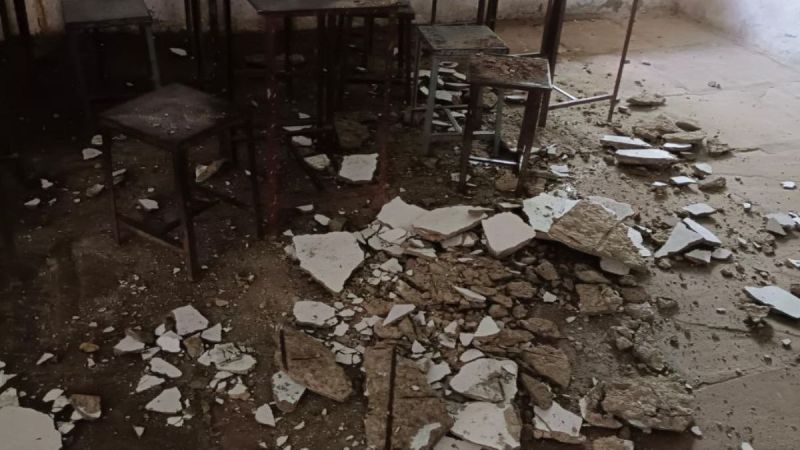 क्लास में छत का प्लास्टर गिरा। फोटो पत्रिका