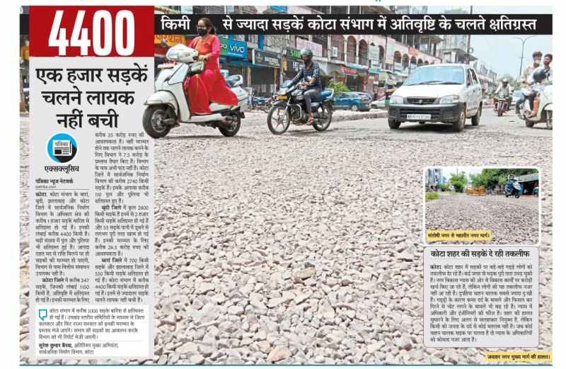 ज्ञात है कि पिछले दिनों आई बाढ़ ने कोटा शहर में बीते सालों में हुए बेतरतीब विकास की पोल खोल दी। कई कॉलोनियां व बस्तियां जलभराव की चपेट में आ गई। औसत से थोड़ी अधिक बरसात ने स्मार्ट सिटी की सड़कों की हालात बिगाड़ दी। अधिकतर सड़कों से डामर पानी के साथ बह गया। कंक्रीट निकल आने से लोगों की राह मुश्किल हो रही है। गुमानपुरा सहित मुख्य बाजारों की सड़कें टूटी होने से दुकानदारों का व्यापार भी प्रभावित हो रहा है। कई सड़कें तो सीवरेज लाइन बिछाने के कारण ही अनियोजित तरीके से उखाड़ दी गई। अब ये सड़कें आए दिन लोगों के जीवन की परीक्षा ले रही हैं।