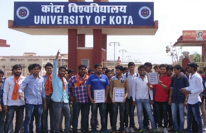वेस्टइंडीज से हुई भारत की हार के बाद एक अप्रेल को एनआईटी श्रीनगर (जम्मू-कश्मीर) कैम्पस में कश्मीरी छात्रों के एक गुट ने पाकिस्तान के समर्थन में नारेबाजी की थी। जिसके विरोध में राजस्थान समेत यूपी और बिहार के छात्रों ने राष्ट्रीय ध्वज लेकर भारत माता के जयकारे लगाए। आरोप है कि प्रदर्शन कर रहे इन छात्रों पर जम्मू-कश्मीर पुलिस ने लाठीचार्ज कर दिया। जिसमें राजस्थान के दो दर्जन से ज्यादा छात्र घायल हुए। एनआईटी श्रीनगर में हुई इस घटना के विरोध में एबीवीपी कार्यकर्ता और कोटा विश्वविद्यालय के छात्रों ने विवि के मुख्य द्वार पर प्रदर्शन किया। उन्होंने जम्मू-कश्मीर सरकार से लाठीचार्ज में घायल हुए छात्रों का उच्च स्तरीय इलाज कराने और सुरक्षा देने की भी मांग की। एसएफडी अध्यक्ष देवव्रत हाड़ा और छात्रसंघ अध्यक्ष लोकेश गुंजल ने पाकिस्तान के समर्थन में नारेबाजी करने वालों के खिलाफ देशद्रोह का मामला दर्ज करने की मांग की। छात्रों ने घटना के विरोध में प्रधानमंत्री कार्यालय को एक ज्ञापन भी भेजा। प्रदर्शन करने वालों में एबीवीपी के कोटा विवि इकाई अध्यक्ष संदीप जांगिड़, उपाध्यक्ष पिंकेश मीणा, धीरेंद्र हाड़ा, शानू गुप्ता, विकास स्वामी, युवराज मालव, करण माहेश्वरी, सुमित गुप्ता, महेश और मनीष जादौन समेत कोटा विवि के छात्र मौजूद रहे।