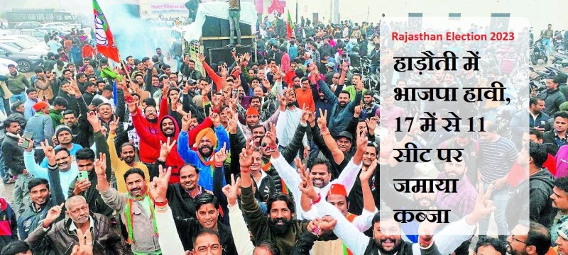 Rajasthan election 2023 हाड़ौती में भाजपा हावी रही। 17 में से 11 सीट पर जमाया कब्जा, कांग्रेस से एक और सीट छीनी. सुबह 8 बजे बारिश के बीच मतगणना शुरू हुई और रूझानों के साथ ही यहां कार्यकर्ताओं का उत्साह कभी जोशीला तो कभी ठंडा नजर आया। दोपहर 1.30 बजे तक हाड़ौती की 17 सीटों पर स्थिति एकदम साफ हो चुकी थी।