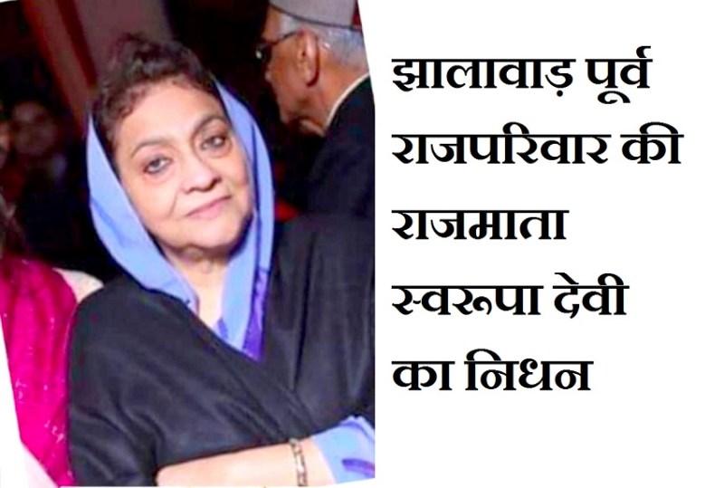 झालावाड़. पूर्व राजपरिवार की राजमाता स्वरूपा देवी (80) पत्नी पूर्व महाराज इंद्रजीत सिंह का सोमवार को निधन हो गया। वे लंबे समय से बीमार थी और दिल्ली में उपचार करा रही थीं। दिल्ली में ही उन्होंने अंतिम सांस ली। जानकारी के अनुसार उनका अंतिम संस्कार मंगलवार को झालावाड़ में किया जाएगा। अभी परिवार के सभी सदस्य दिल्ली में ही है। स्वरूपा देवी उत्तराखंड के टिहरी गढ़वाल के पूर्व नरेश कर्नल मानवेंद्र शाह की पुत्री थी। झालावाड़ के पूर्व नरेश इंद्रजीत सिंह से इनका विवाह 19 अप्रेल 1968 में दिल्ली में हुआ था।इनके दो पुत्र चंद्रजीत सिंह व अपराजित सिंह और एक पुत्री राजीवनी है।