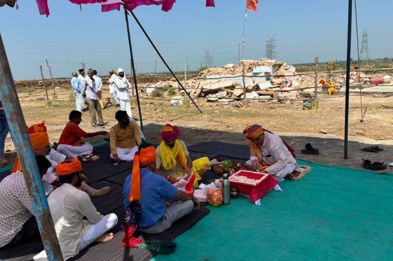 छतरी निर्माण कार्य का भूमि पूजन करते समाजगण