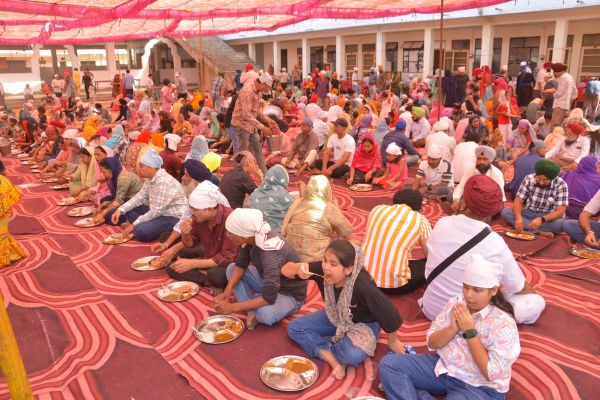 विज्ञान नगर गुरुद्वारे में रविवार को आयोजित कायर्क्रम में लंगर चखते श्रद्धालु।