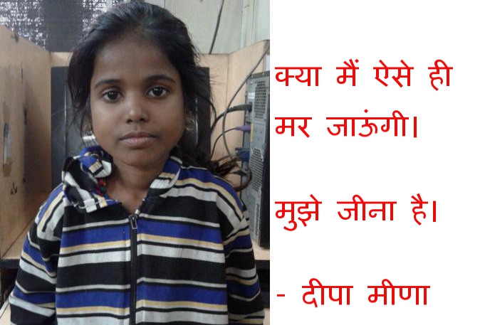 सर, क्या मैं ऐसे ही मर जाऊंगी। मुझे जीना है। मेरा स्वास्थ्य ठीक हो जाएगा तो बड़ी होकर कुछ कर दिखना चाहती हूं। लेकिन अभी बीमारी की वजह से लाचार हूं। ऐसी पीड़ा है पांच साल से बीमार चल रही मेधावी छात्रा दीपा मीणा की। जो इस साल कक्षा 6वीं में पढ़ रही है। लेकिन बीमारी ने ऐसा जकड रखा है कि वह न तो ठीक तरीके से भोजन कर पाती है और न ही पढ़ाई। बीमारी के चलते दीपा का शारीरिक विकास भी नहीं हो पा रहा।