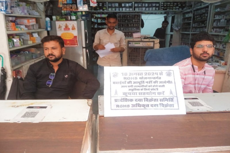 पिछले चार माह से आरजीएचएस योजना में अनुबंधित कैमिस्ट की करोड़ों की राशि बकाया है। इसके चलते पिछले 10 अगस्त से हड़ताल पर है। वित्त मंत्री दीया कुमारी, एसीएस बजट व वित्त सचिव से मिल चुके है। वित्त मंत्री ने जल्द बजट जारी करने का आश्वासन दिया था, लेकिन बजट जारी नहीं किया।
