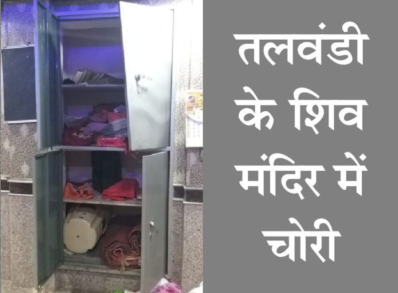 कोटा. तलवंडी सेक्टर बी स्थित शिव मंदिर में बुधवार रात अज्ञात चोर मंदिर के मुख्य द्वार व तीन दानपेटियों के ताले तोड़कर दान की राशि चुरा ले गए। शिव मंदिर एवं उद्यान विकास समिति के अध्यक्ष प्रेमनारायण नंदवाना ने बताया कि गुरुवार सुबह जब मंदिर के पुजारी दीपक कुमार शर्मा नित्यपूजा के लिए मंदिर पहुंचे तो मुख्य द्वार का टूटा हुआ ताला देखा। उन्होंने मंदिर समिति के पदाधिकारियों को सूचना दी। मंदिर में भक्तों व समिति पदाधिकारियों ने देखा कि मुख्य द्वार व तीनों दानपेटियों के ताले टूटे थे और राशि गायब थी। इसके अलावा मंदिर में रखी महिला मंडल की अलमारी खुली पड़ी थी। उसके सारे सामान भी बाहर बिखरे पड़े थे। पुलिस ने मामला दर्ज कर जांच शुरू की।