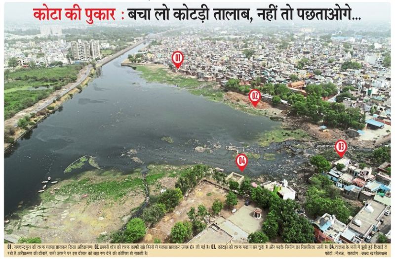 - ऐतिहासिक कोटड़ी तालाब में मलबा डालकर पाटा जा रहा है। पक्के निर्माण भी हो चुके हैं।