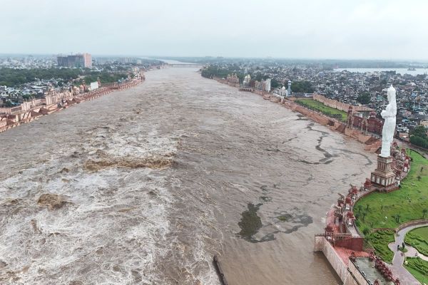 defaulकोटा बैराज के बारह गेट खोलकर की पानी की निकासी।t