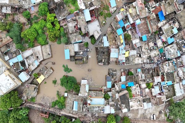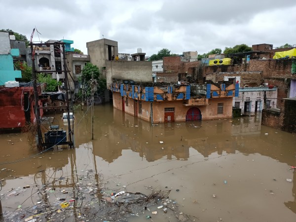 बैराज के गेट खोले के जाने के बाद नयापुरा बस्ती में घुसा पानी