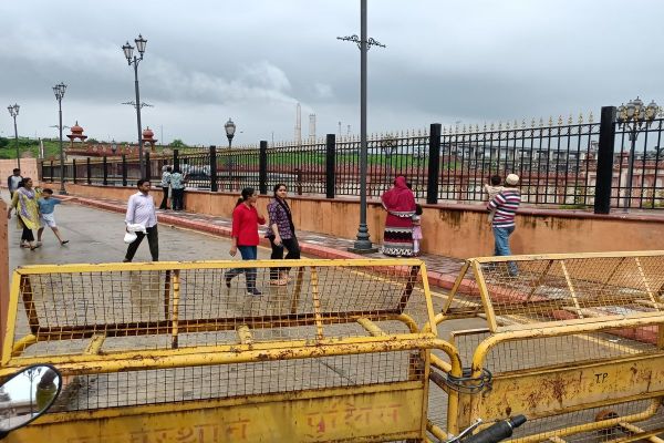 बैराज के गेट खोले के जाने के बाद मार्ग पर लगाए बैरिकेट्स